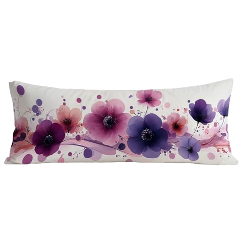 Taie Oreiller 40x120 cm Violet Housse Traversin 120 cm Velour Rectangulaire Housse Coussin, Protege Oreiller Fleurs Conception d'impression Recto Verso Pillow Case pour Decoratif Canape Lit BZ-752