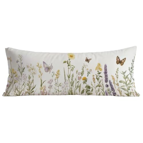 Taie Oreiller 40x120cm Rose Housse Traversin 120 cm Durable Lin Rectangulaire Housse Coussin, Protege Oreiller Papillon Conception D'impression Recto Verso Pillow Case pour Decoratif Canape Lit BZ-692
