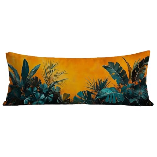 Taie Oreiller 40x120 cm Couleur Unie Housse Traversin 120 cm Durable Lin Rectangulaire Housse Coussin, Protege Oreiller Feuilles Conception d'impression Recto Verso Pillow Case pour Canape Lit BZ-472