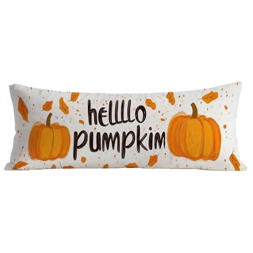 Taie Oreiller 40x120 cm Beige Housse Traversin 120 cm Velour Rectangulaire Housse Coussin, Protege Oreiller Citrouille Conception d'impression Recto Verso Pillow Case pour Decoratif Canape Lit BZ-722
