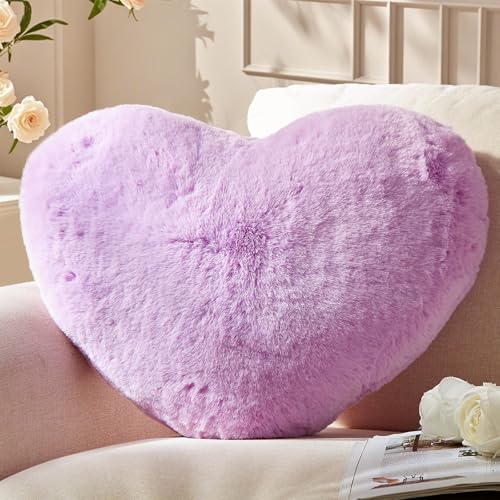 Yhoelata Coussin Coeur Groß, Coussin en Forme de Coeur Lilas, Oreiller Cœur Coussins Décoratif en Peluche, Coussins Décoration Canapé, Deco Chambre Ado Fille, 38x48 cm