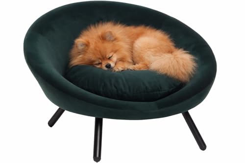 Panier Chien - Panier Chat - canape Chien - Dolco - Sofa - Ronde - Verte - 54x50x40 cm - Textile Bois métal - pour Petits Chiens et Chats - Coussin Amovible