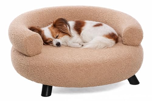 Panier Chien - Panier Chat - canape Chien - Dudo - Sofa - Ronde - Beige - 62x62x28 cm - Textile et Bois - pour Petits Chiens et Chats - Pieds en Bois