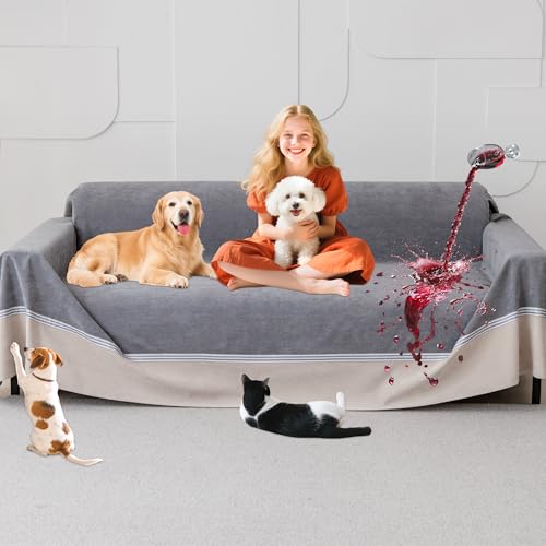 Loiion 100% Protège Canapé Imperméable, Protege Canape Chien, Housse de Canapé Anti Pipi, Housse de Canape Anti Dérapante, Anti-Griffes Protège pour Chiens Chats Animaux, Gris, 300x230cm