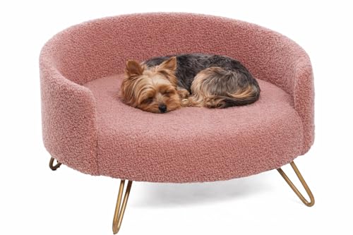 Panier Chien - Panier Chat - canape Chien - Dizco - Sofa - Ronde - Rose - 51x50x30,5 cm - Textile Bois métal - pour Petits Chiens et Chats - Pieds en métal