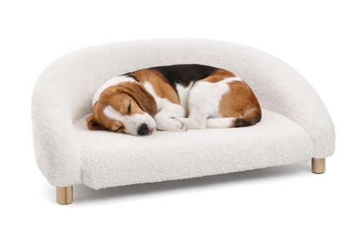 Panier Chien - Panier Chat - canape Chien - Dorado - Sofa - Demi-Ronde - Blanche - 77x50x27 cm - Textile et Bois - pour Petits Chiens et Chats - Pieds en Bois