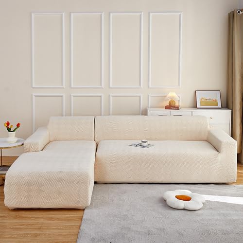 ABUKJM Housse de canapé d'angle, Protection canape de Salon, Tissu Confortable, Anti-Boulochage, Lavable en Machine, Convient à la Plupart des canapés modulables,Off White,4 Seater 235-300cm