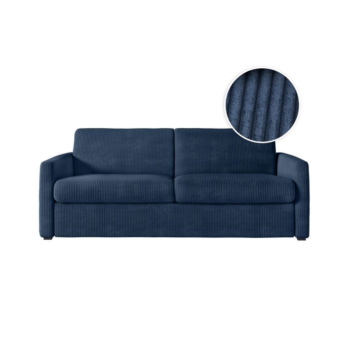 Canapé convertible express 3 places ESIO couchage quotidien 140x190cm en velours côtelé - Bleu foncé