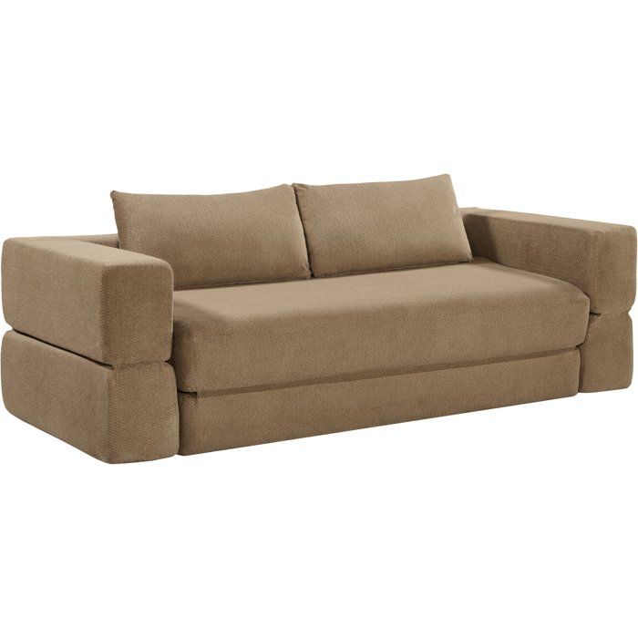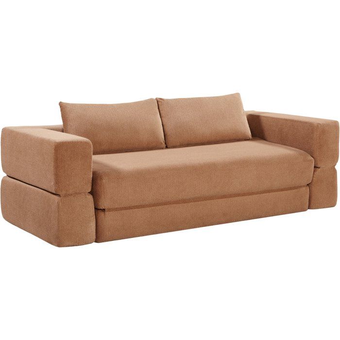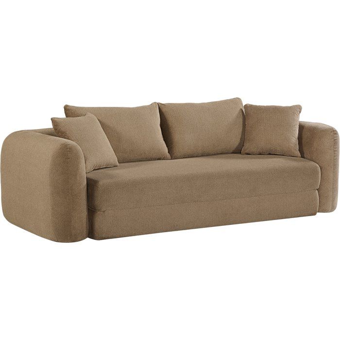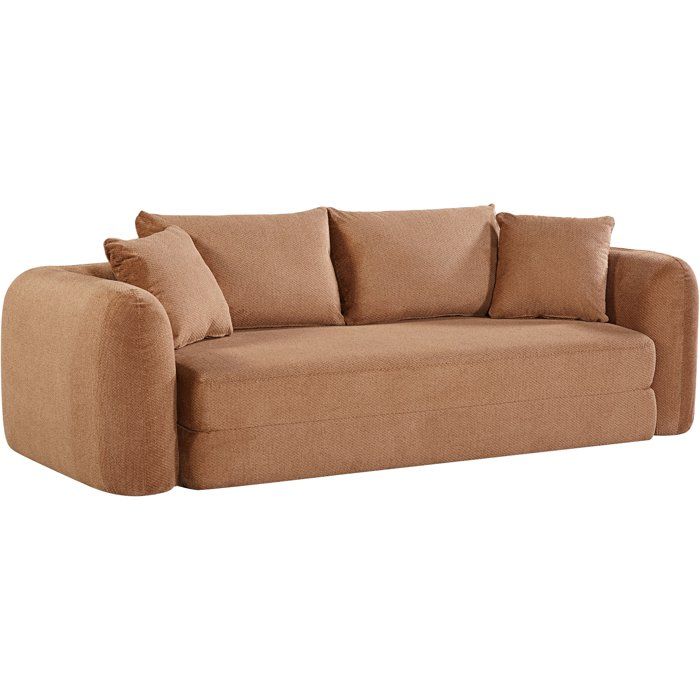 Canapé compressé convertible - 2/3 places - ROSALIE - Tissu Camel - Accoudoirs dépliables - 233 x 100 x 81 cm