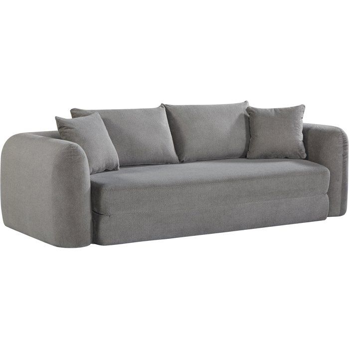Canapé compressé convertible - 2/3 places - ROSALIE - Tissu Gris clair - Accoudoirs dépliables - 233 x 100 x 81 cm