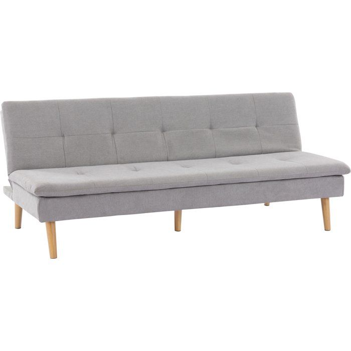 Homcom Canapé convertible 2 places design scandinave dossier inclinable 3 positions pieds bois tissu aspect lin gris