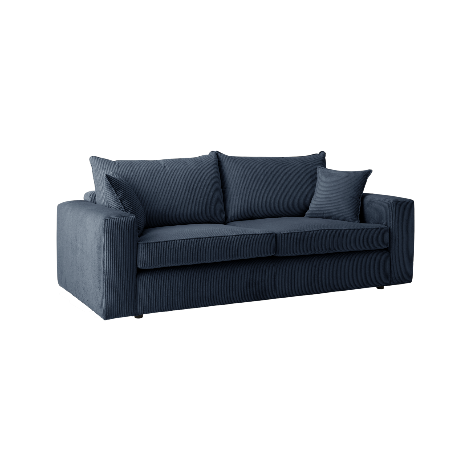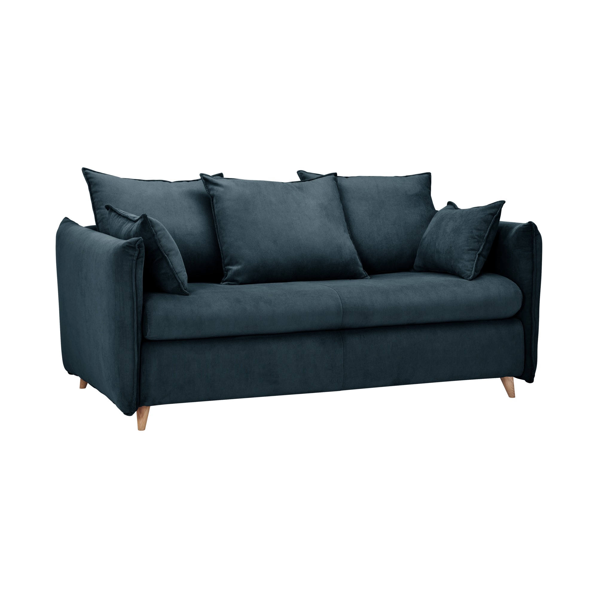 Vente Unique Canapé 3 places convertible express en velours côtelé bleu nuit Couchage 140 cm Matelas 18 cm LORETO