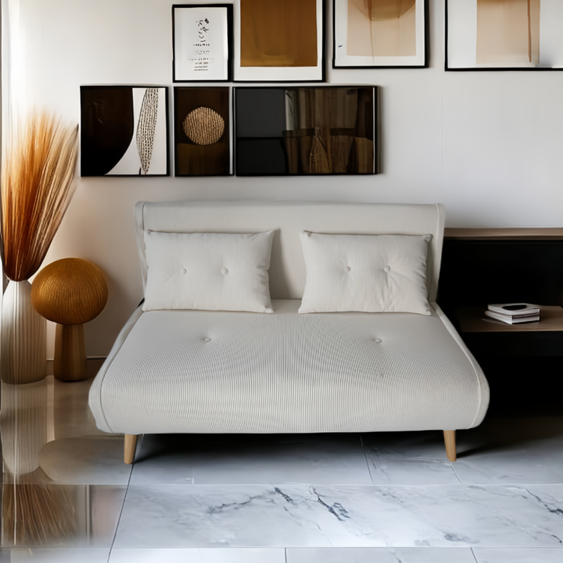 Vente Unique Canapé 2 places convertible en velours côtelé beige MIRTO