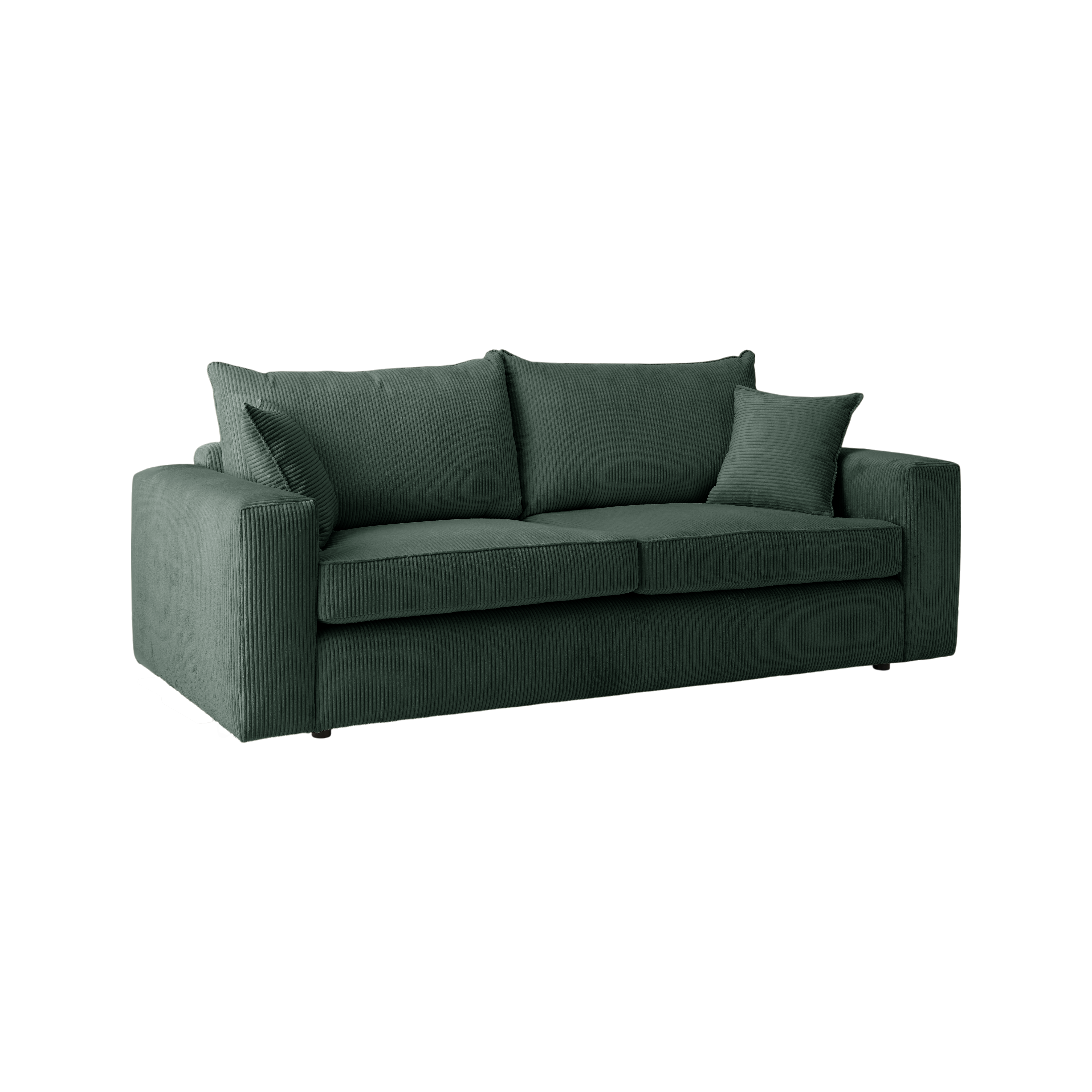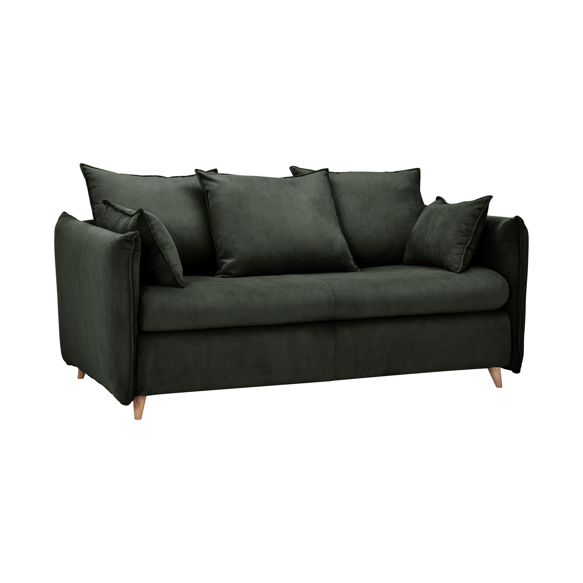 Vente Unique Canapé 3 places convertible express en velours côtelé vert sapin Couchage 140 cm Matelas 22 cm LORETO