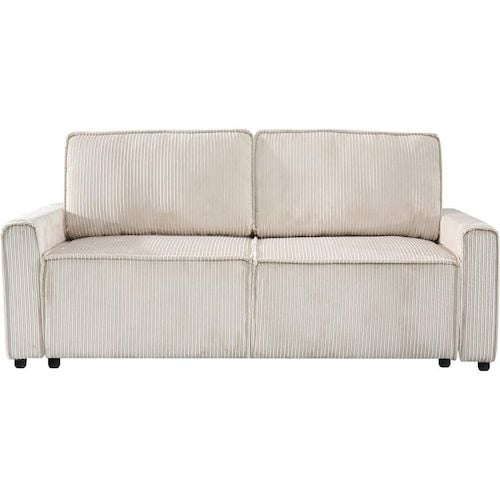 Vente Unique Canapé 3 places convertible express en velours côtelé beige Couchage 140 cm Matelas 14 cm CALITO