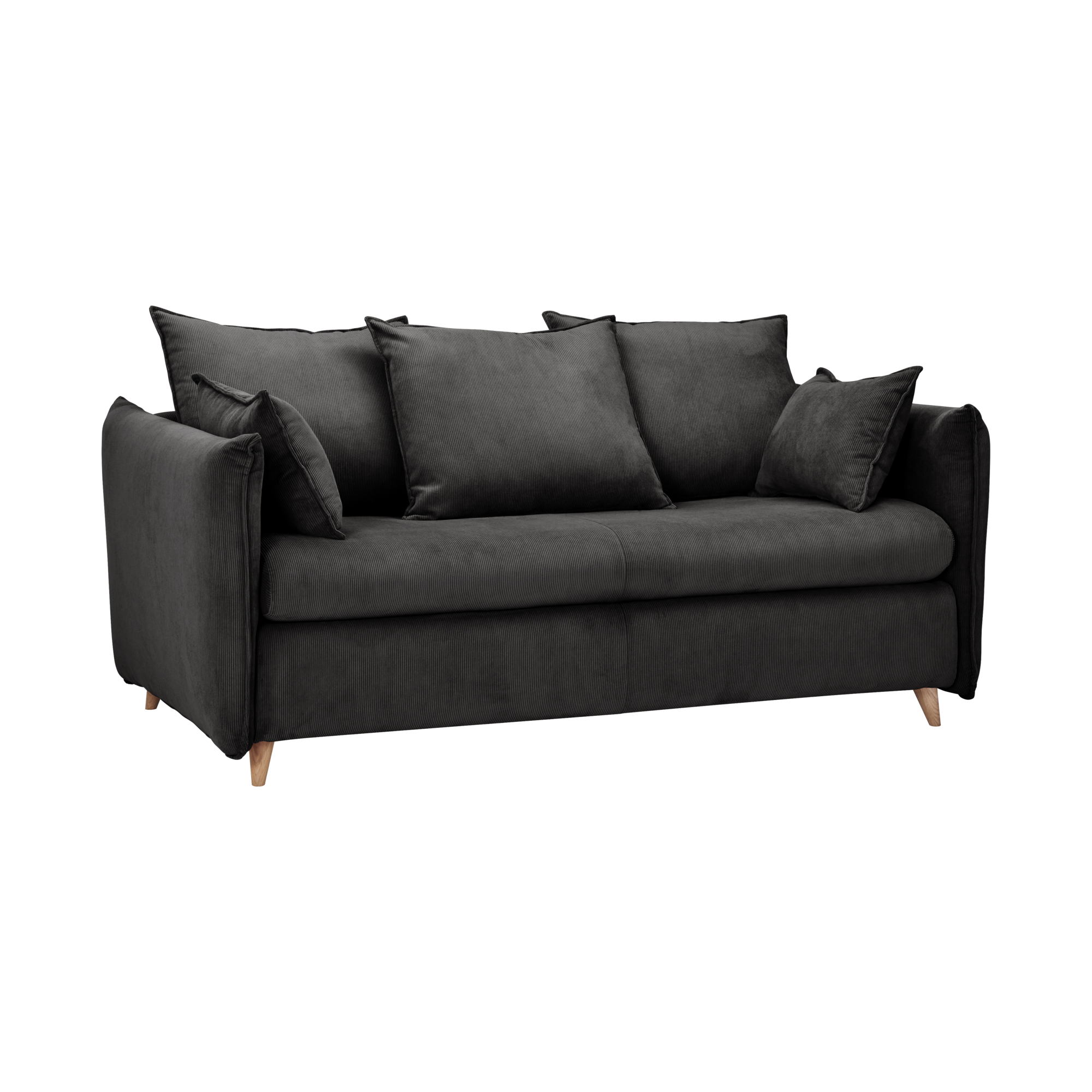 Vente Unique Canapé 4 places convertible en velours côtelé gris anthracite AMELIA