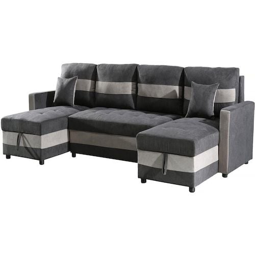 Canapé panoramique convertible avec coffres de rangement Antoine - 5 places - Gris foncé/ Gris clair