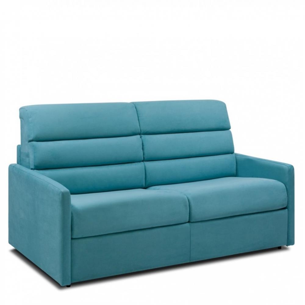 Canapé convertible CanapExpress CHAMPAGNY 140 cm matelas memory 22 cm dossiers hauts velours bleu turquoise
