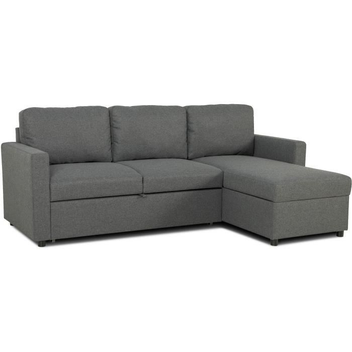 Canapé dangle convertible réversible MAX - Méridienne avec coffre - Tissu gris foncé - L 240 x P 143 x H 85 cm