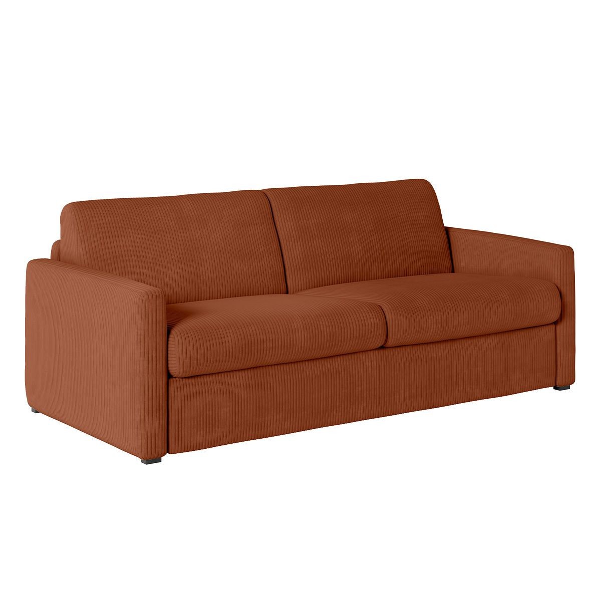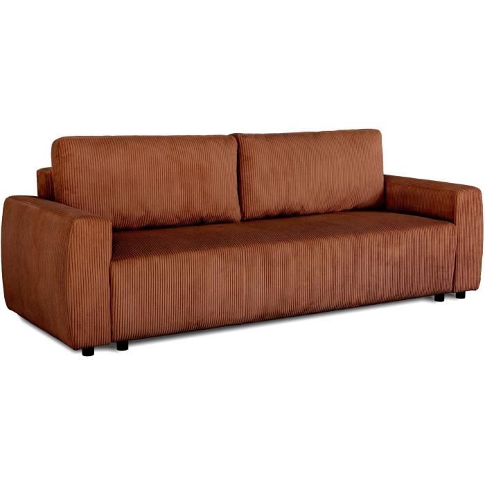 Canapé convertible express 3 places ESIO couchage quotidien 140x190cm en velours côtelé - Terracotta