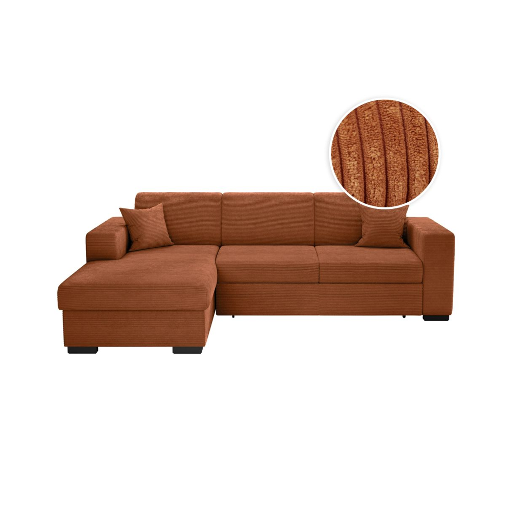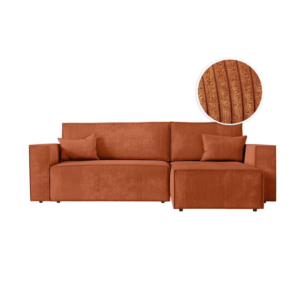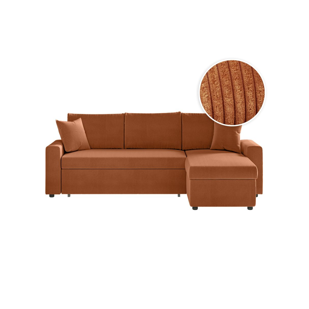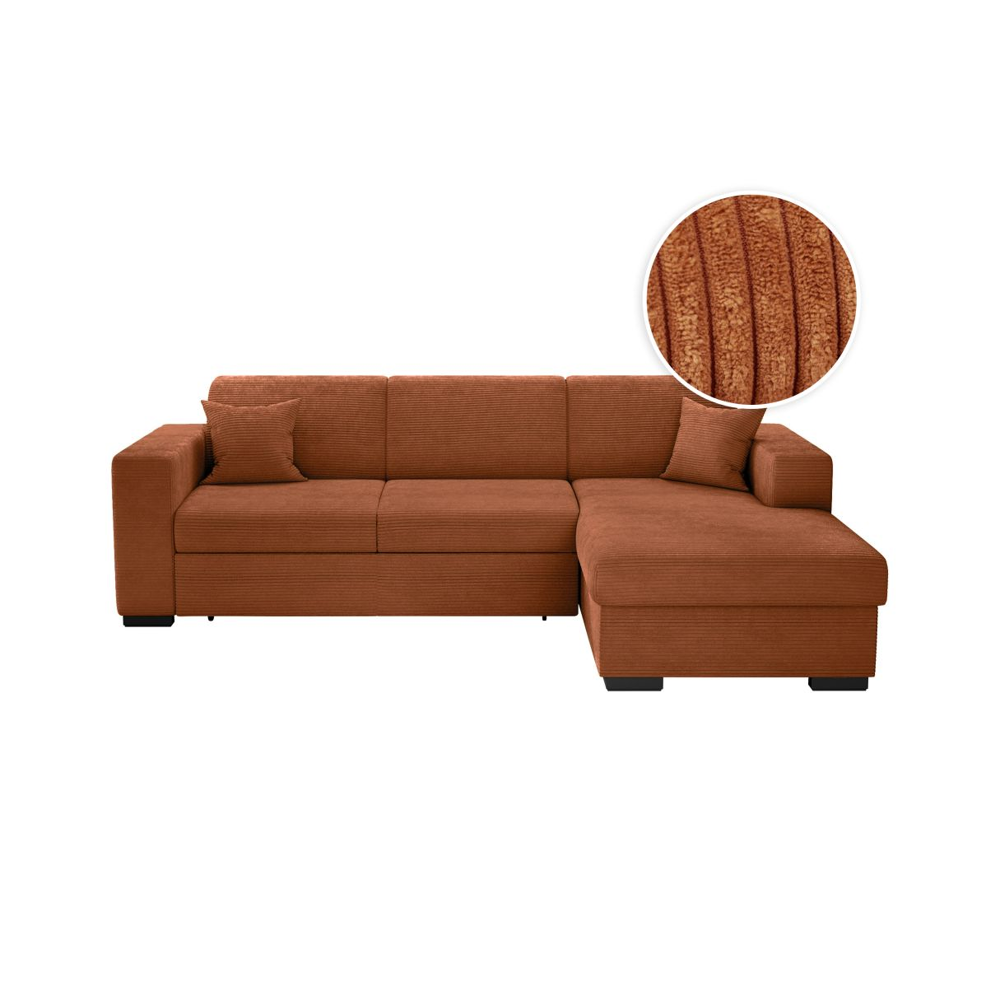 Canapé dangle droit convertible RIO 5 places avec coffre de rangement en velours côtelé - Terracotta