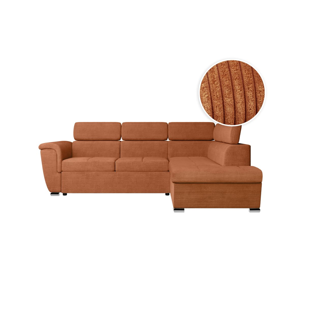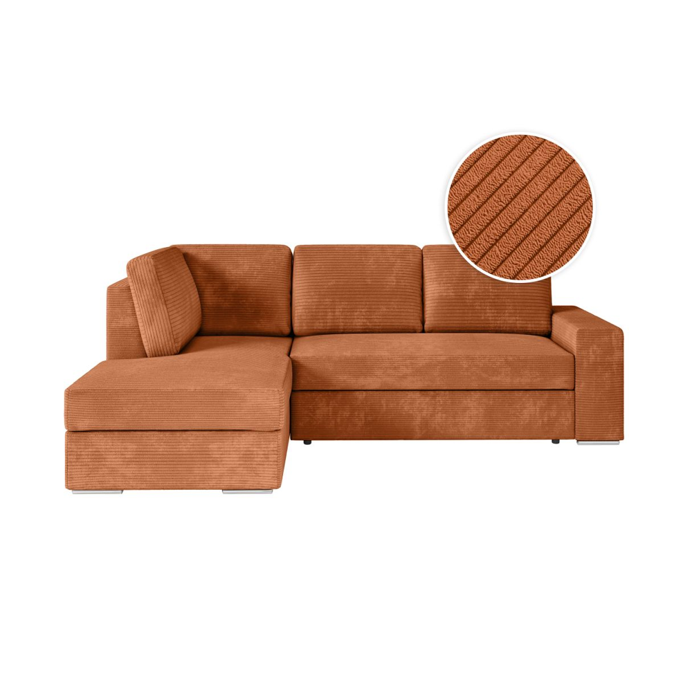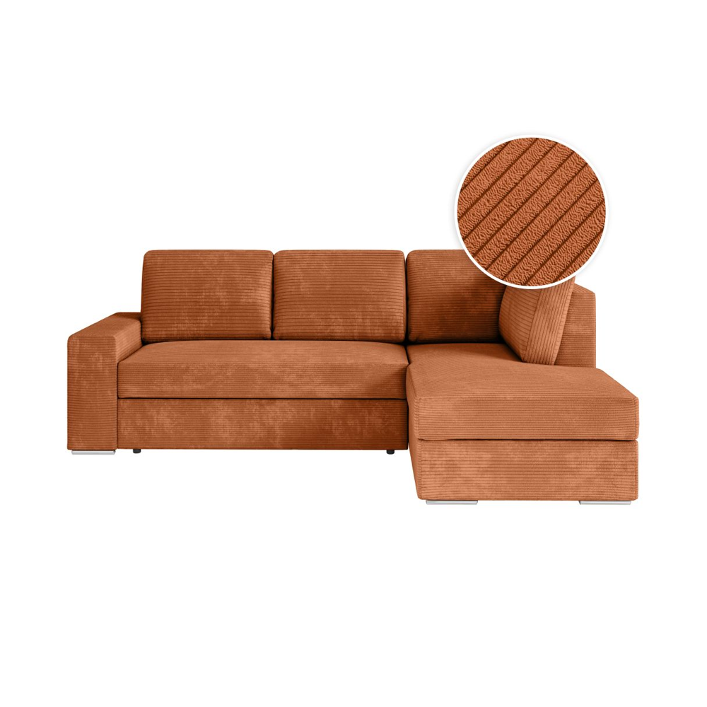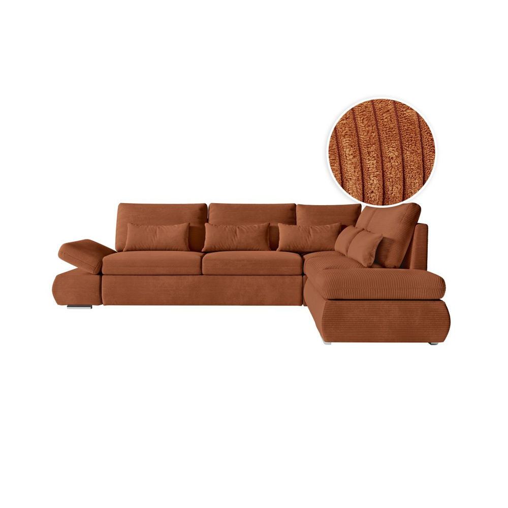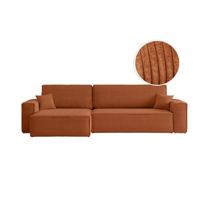 Canapé dangle droit convertible RIO 5 places avec coffre de rangement en velours côtelé - Terracotta