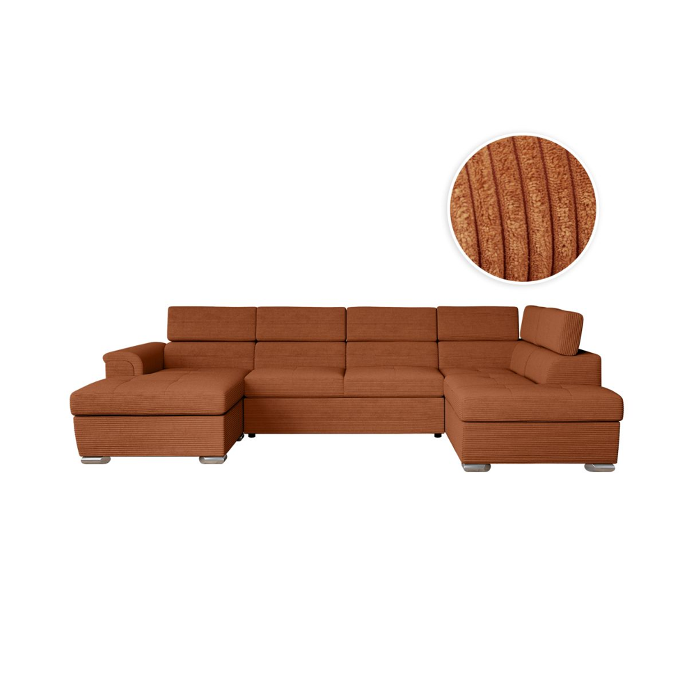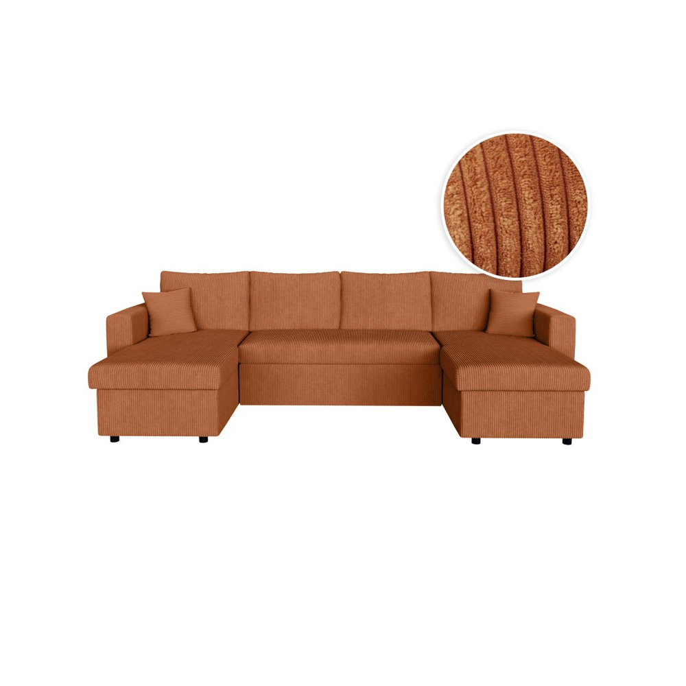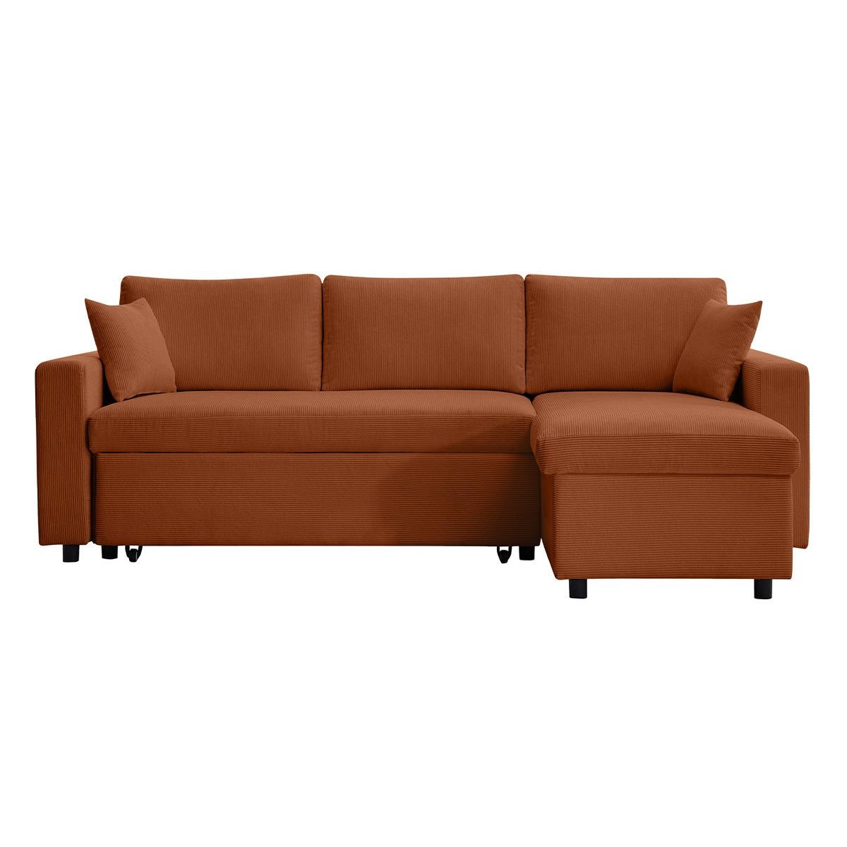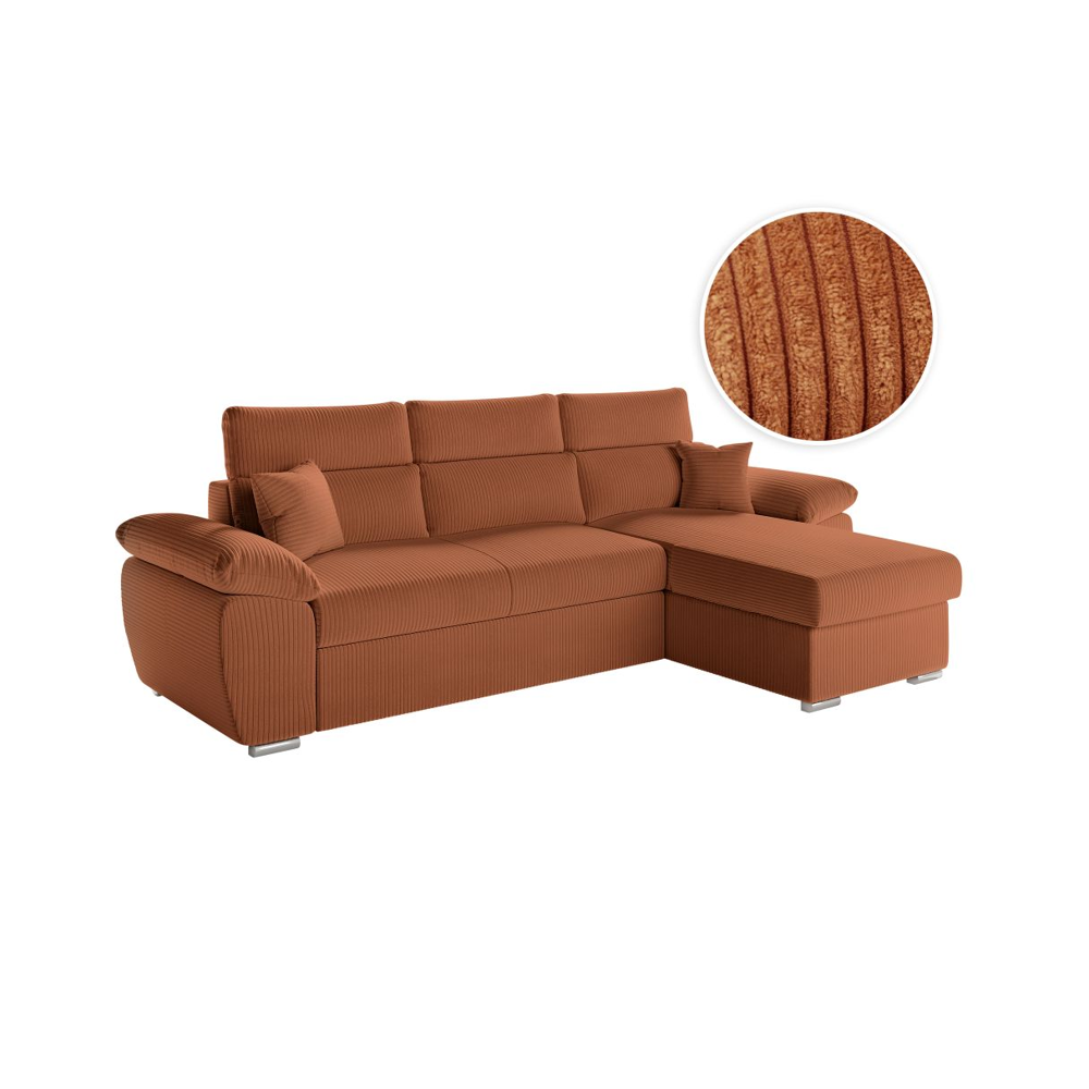 Canapé dangle droit convertible RIO 5 places avec coffre de rangement en velours côtelé - Terracotta