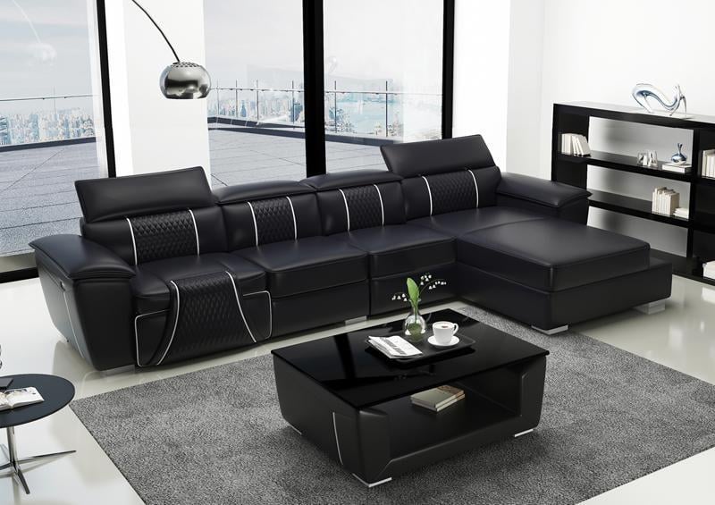 Vente Unique Noir Canapé d'angle relax électrique en cuir SITIA Angle droit