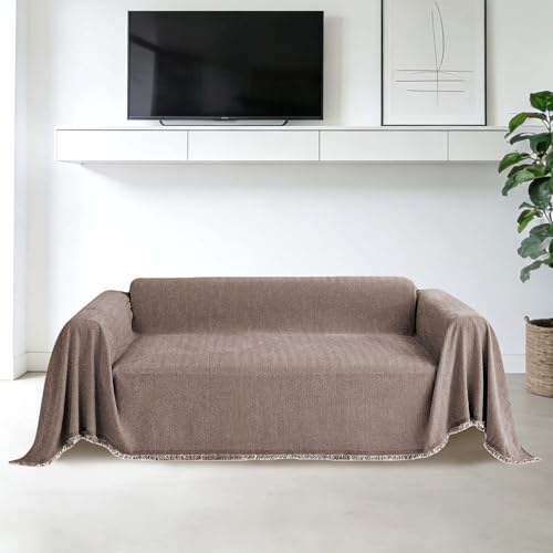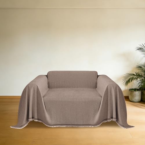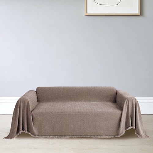 CHUNRONG Housse de Canapé d'angle 180 x 190 cm Anti Dérapante Canape Chat Chiens Anti Griffe en Chenille Sofa Cover Rides Convient Aux Enfants, Chiens, Chats, Brun
