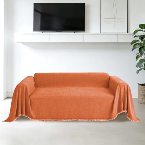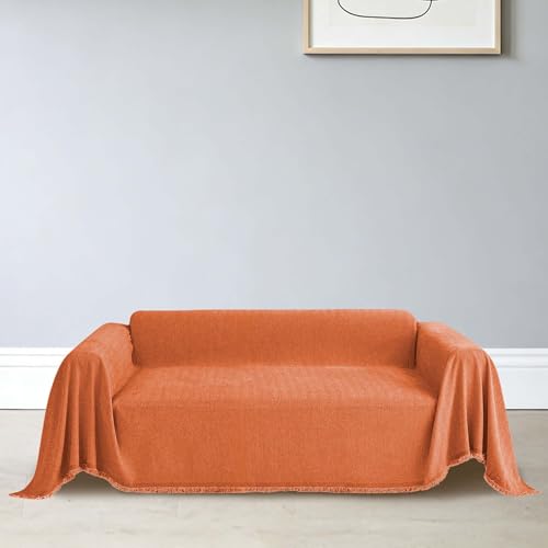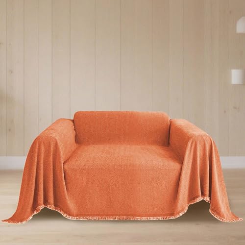 CHUNRONG Housse de Canapé d'angle 180 x 190 cm Anti Dérapante Canape Chat Chiens Anti Griffe en Chenille Sofa Cover Rides Convient Aux Enfants, Chiens, Chats, Orange