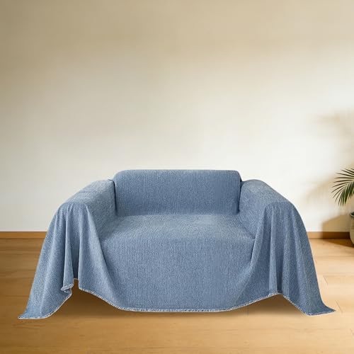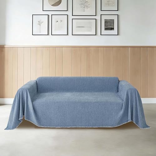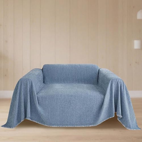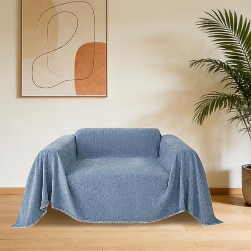 CHUNRONG Housse de Canapé d'angle 180 x 190 cm Anti Dérapante Canape Chat Chiens Anti Griffe en Chenille Sofa Cover Rides Convient Aux Enfants, Chiens, Chats, Bleu