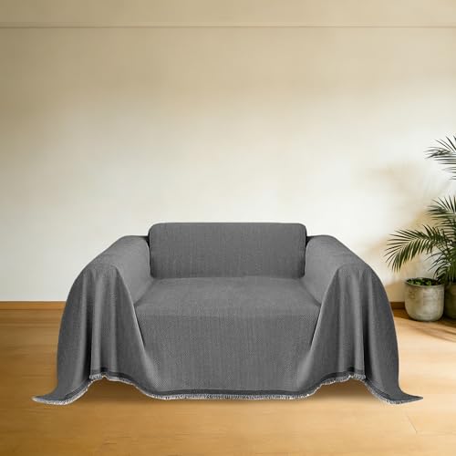 CHUNRONG Housse de Canapé d'angle 180 x 190 cm Anti Dérapante Canape Chat Chiens Anti Griffe en Chenille Sofa Cover Rides Convient Aux Enfants, Chiens, Chats, Gris