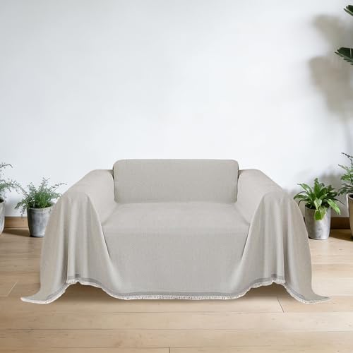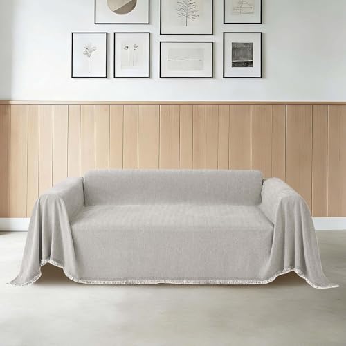 CHUNRONG Housse de Canapé d'angle 180 x 190 cm Anti Dérapante Canape Chat Chiens Anti Griffe en Chenille Sofa Cover Rides Convient Aux Enfants, Chiens, Chats, Blanc cassé