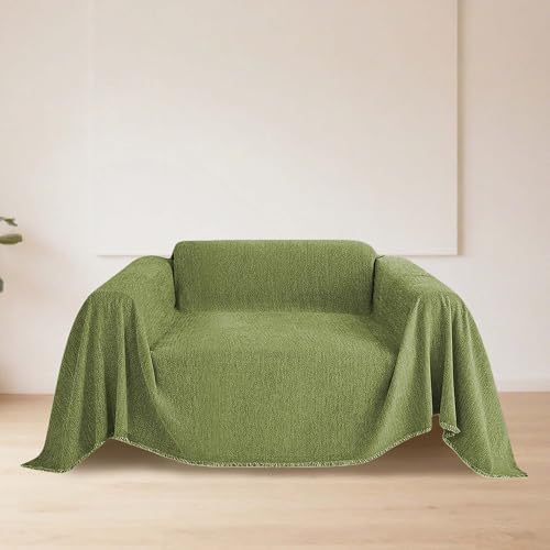 CHUNRONG Housse de Canapé d'angle 180 x 190 cm Anti Dérapante Canape Chat Chiens Anti Griffe en Chenille Sofa Cover Rides Convient Aux Enfants, Chiens, Chats, Vert