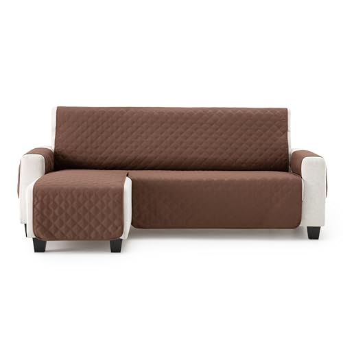 MAXIFUNDAS | Housse de canapé d'angle rembourrée Bras Gauche 220 cm - Housse de canapé Extra Doux Marron - Housse de canapé avec Sangles arrière - Housse de Chaise Longue de Protection de canapé