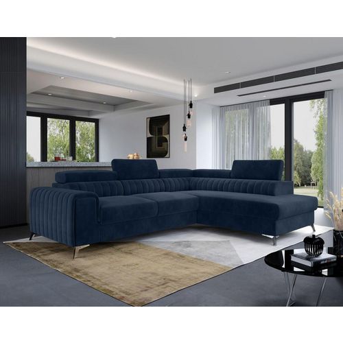 Pablo - canapé d'angle droit - 5 places - convertible avec coffre et têtières réglables - en velours - bleu nuit bleu nuit Taille unique