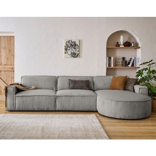 Spiaggia - canapé d'angle droit - 5 places - en velours côtelé - gris clair gris Taille unique