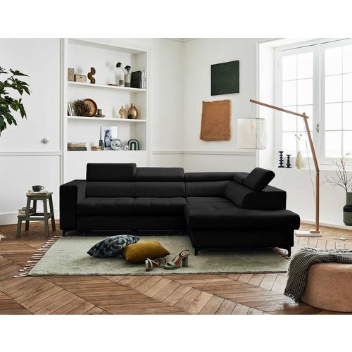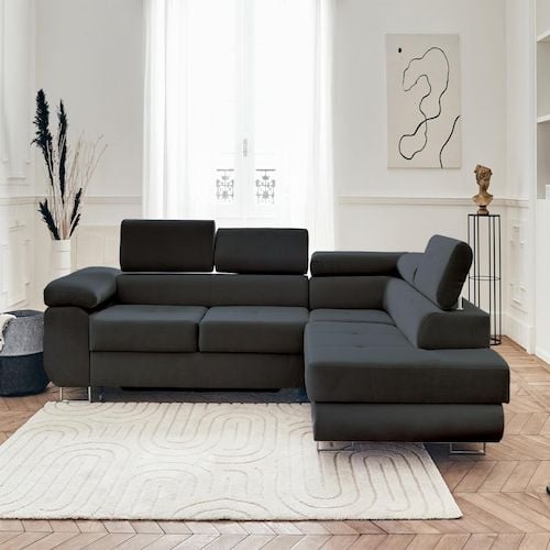 Olinda - canapé d'angle droit - 5 places - convertible avec coffre et têtières réglables - en tissu - noir noir Taille unique