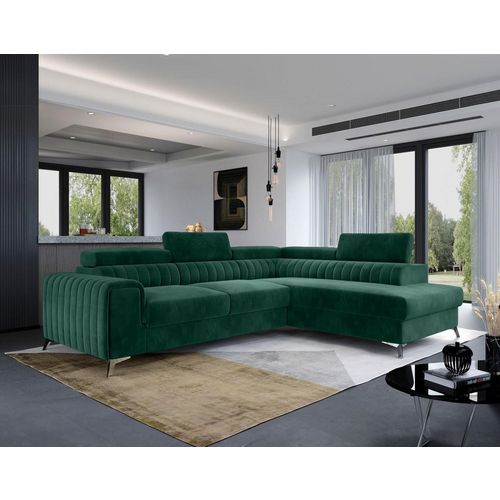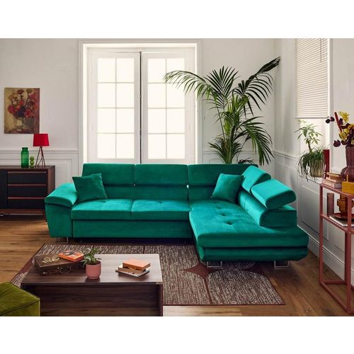 Pablo - canapé d'angle droit - 5 places - convertible avec coffre et têtières réglables - en velours - vert vert Taille unique