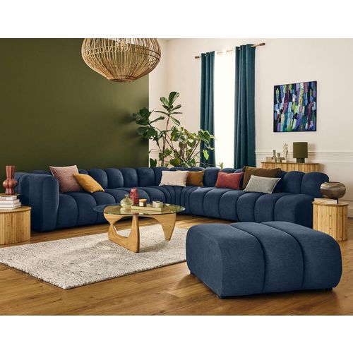Ruby - canapé modulable d'angle droit 5 places en velours texturé - bleu bleu Taille unique