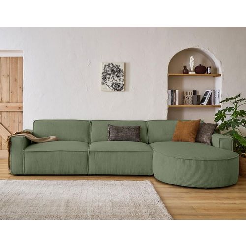 Spiaggia - canapé d'angle droit - 5 places - en velours côtelé - vert sauge vert sauge Taille unique