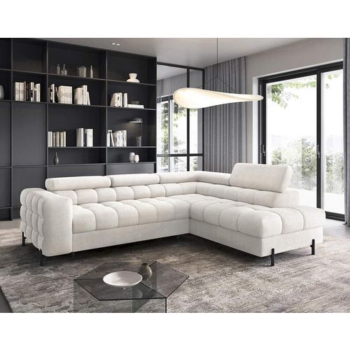 Elisa - canapé d'angle droit 5 places convertible avec coffre et têtières réglables en tissu bouclette - blanc blanc Taille unique