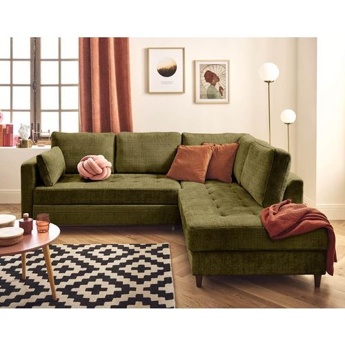 Anna - canapé d'angle droit - 5 places - convertible - en velours - vert olive vert olive Taille unique