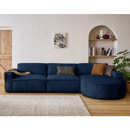 Spiaggia - canapé d'angle droit - 5 places - en velours côtelé - bleu bleu Taille unique
