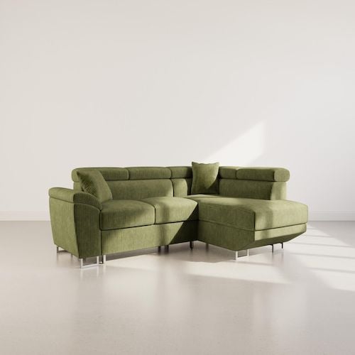 Olinda - canapé d'angle droit - 5 places - convertible avec coffre et têtières réglables - en tissu - vert sauge vert sauge Taille unique
