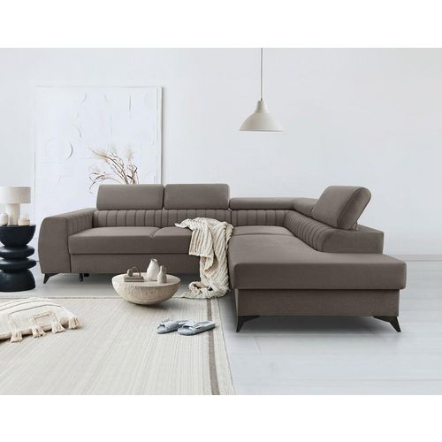 Paul - canapé d'angle droit - 5 places - convertible avec coffre et têtières - en tissu - taupe taupe Taille unique