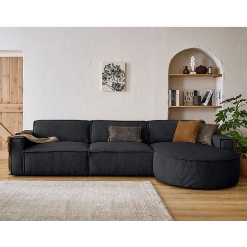 Spiaggia - canapé d'angle droit - 5 places - en velours côtelé - gris foncé gris foncé Taille unique