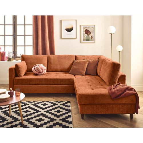 Anna - canapé d'angle droit - 5 places - convertible - en velours - rouille rouille Taille unique