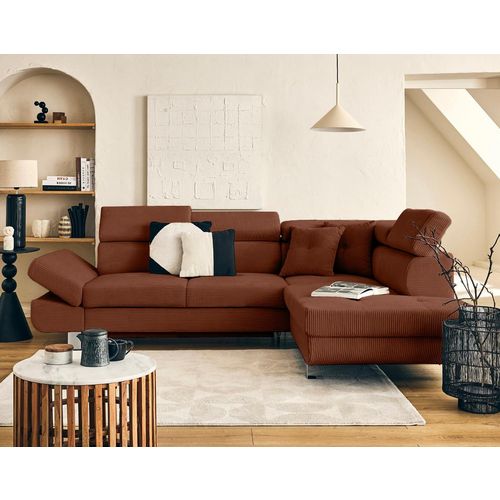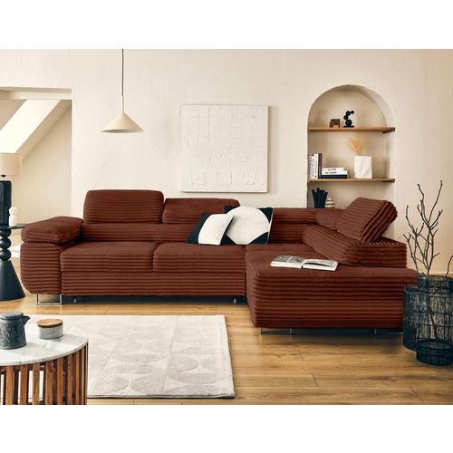 Lisbona - canapé d'angle droit 5 places convertible avec têtières en velours côtelé - terracotta terracotta Taille unique