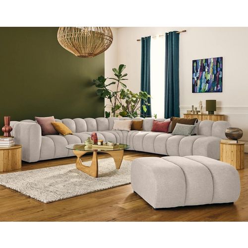 Ruby - canapé modulable d'angle droit 5 places en velours texturé - beige beige Taille unique